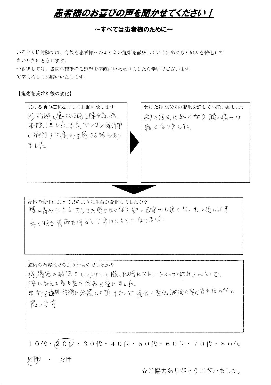 S.J様 20代 男性 ①腰痛 ②ストレートネック